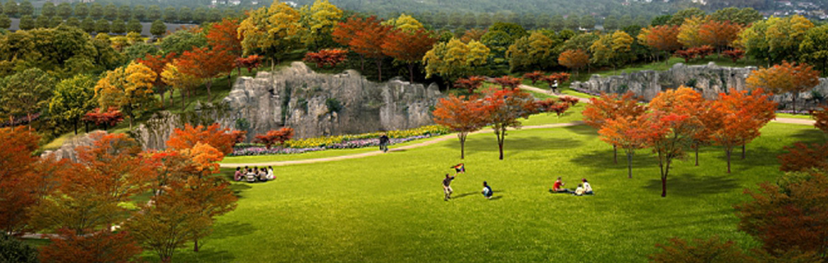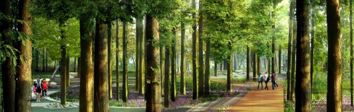 香杉動影、杉林花溪:該兩個景區(qū)位于金地自在城東側(cè)大坂湖直江以東,群賢路南北兩個地塊,總面積約77497平方米。植物配置以水杉、池杉、落羽杉、墨西哥落羽杉為主。該區(qū)設(shè)有健身廣場、石溪嬉水、碼頭廣場、杉林棧道、休息小亭、煙水廊、運動草坪、聞濤亭、香杉園、公廁、濱水小廣場等景點,是人們進行林間燒烤、健身活動的主要場所。