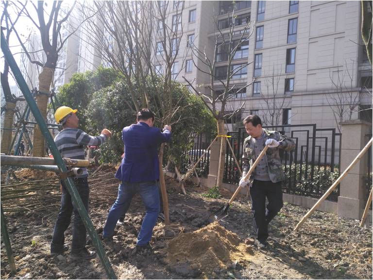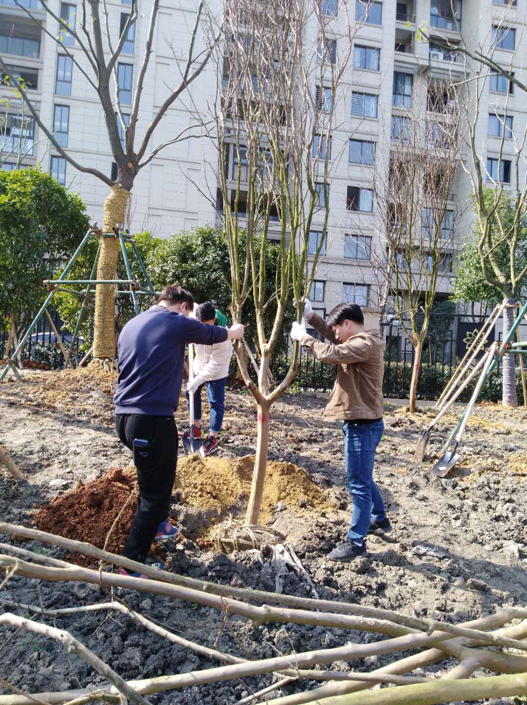 雖是春寒料峭,但植樹活動(dòng)現(xiàn)場(chǎng)卻呈現(xiàn)出一派熱火朝天的景象,大家分工明確,密切配合,有的揮鍬鏟土、有的扶樹填土、有的培土澆木,忙的不亦樂乎。經(jīng)過一個(gè)多小時(shí)的勞動(dòng),紫薇、茶花、桂花、蠶絲海棠等100余株樹苗在周邊綠化帶里“安家落戶”,為時(shí)尚紡城再添新綠。