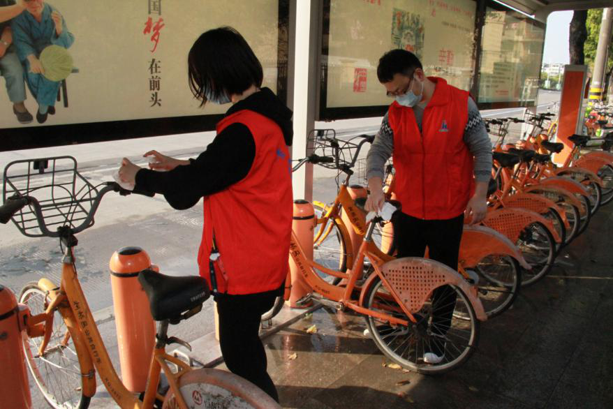 疫情當(dāng)下,使命當(dāng)頭,集團(tuán)青年志愿者們身著紅背心,沿著紹大線一路前行,向道路周邊小區(qū)和沿線商鋪居民發(fā)放公益?zhèn)鲉魏鸵淮涡跃凭奁?,向居民科普抗擊疫情相關(guān)知識,提醒居民加強(qiáng)自我防范意識,減少外出活動,樹立戰(zhàn)疫信心。同時志愿者們還對紹大線沿線公交車站和公共自行車停放點(diǎn)等人流量較大的公共區(qū)域進(jìn)行酒精噴灑和消毒棉片擦拭,減少病菌的傳播擴(kuò)散。遇到有不佩戴口罩或佩戴口罩不規(guī)范的居民,志愿者們耐心地加以勸導(dǎo),并示范口罩正確佩戴方式。