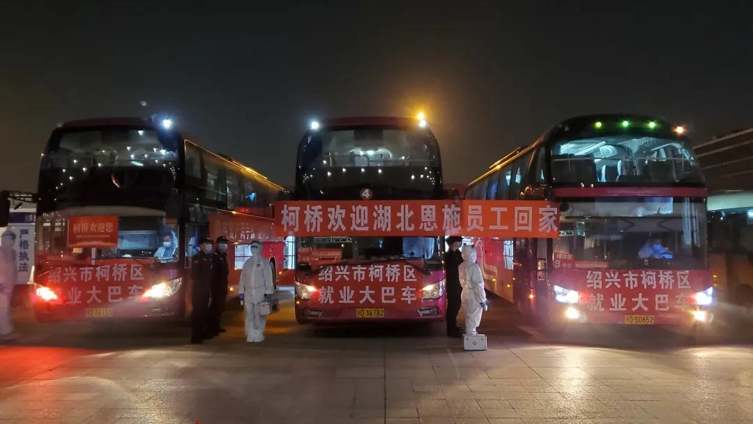 當天上午9點30分,湖北省恩施土家族自治州發(fā)出了該省新冠疫情防控以來首趟D658次就業(yè)專列。下午17點,公車公司根據(jù)區(qū)人社局要求,積極調用三輛大巴車整裝待發(fā),提前到達紹興北站做好點對點接站準備工作。19點34分,列車載著530余名來自湖北恩施的務工人員抵達紹興北站,經過1個小時的測量登記、確認就坐,晚上21點,三輛大巴載著約100名柯橋區(qū)企業(yè)員工駛入柯橋區(qū)集中醫(yī)學觀察點。