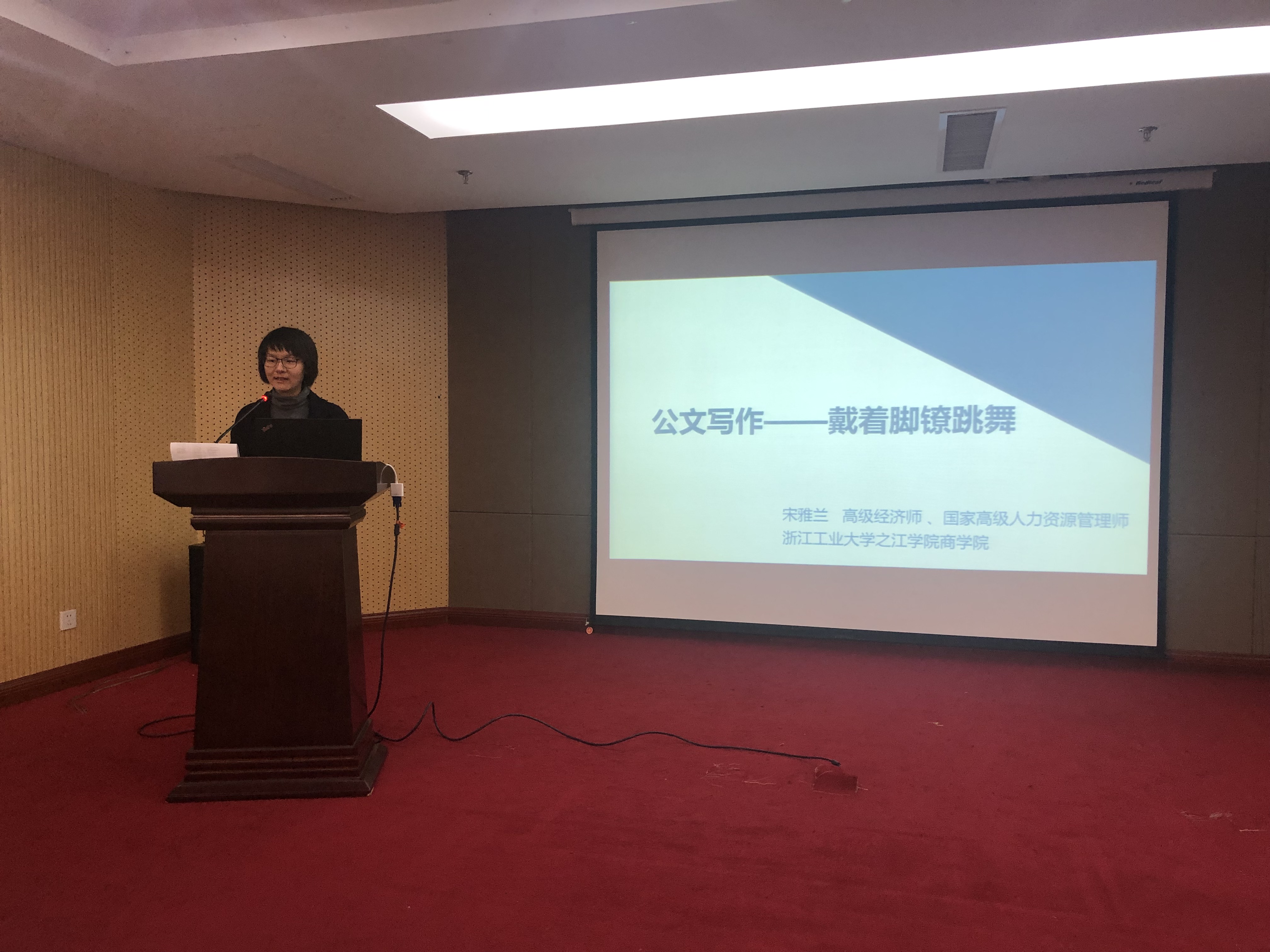 本次培訓(xùn),邀請浙江工業(yè)大學(xué)之江學(xué)院宋雅蘭老師進行授課。培訓(xùn)課上,宋雅蘭老師向大家深入淺出的講述了公文寫作的基礎(chǔ)知識,詳細闡述了公文的規(guī)范格式,著重為大家講述了決定、通知、公告、報告、請示等公文的寫作方法,并逐個舉例說明,生動形象。通過培訓(xùn),大家收獲頗豐,對公文寫作有了全面認識和深刻理解,希望能把學(xué)到的知識用到工作中,增強公文規(guī)范意識,不斷提高公文寫作水平,以更好地完成本職工作。